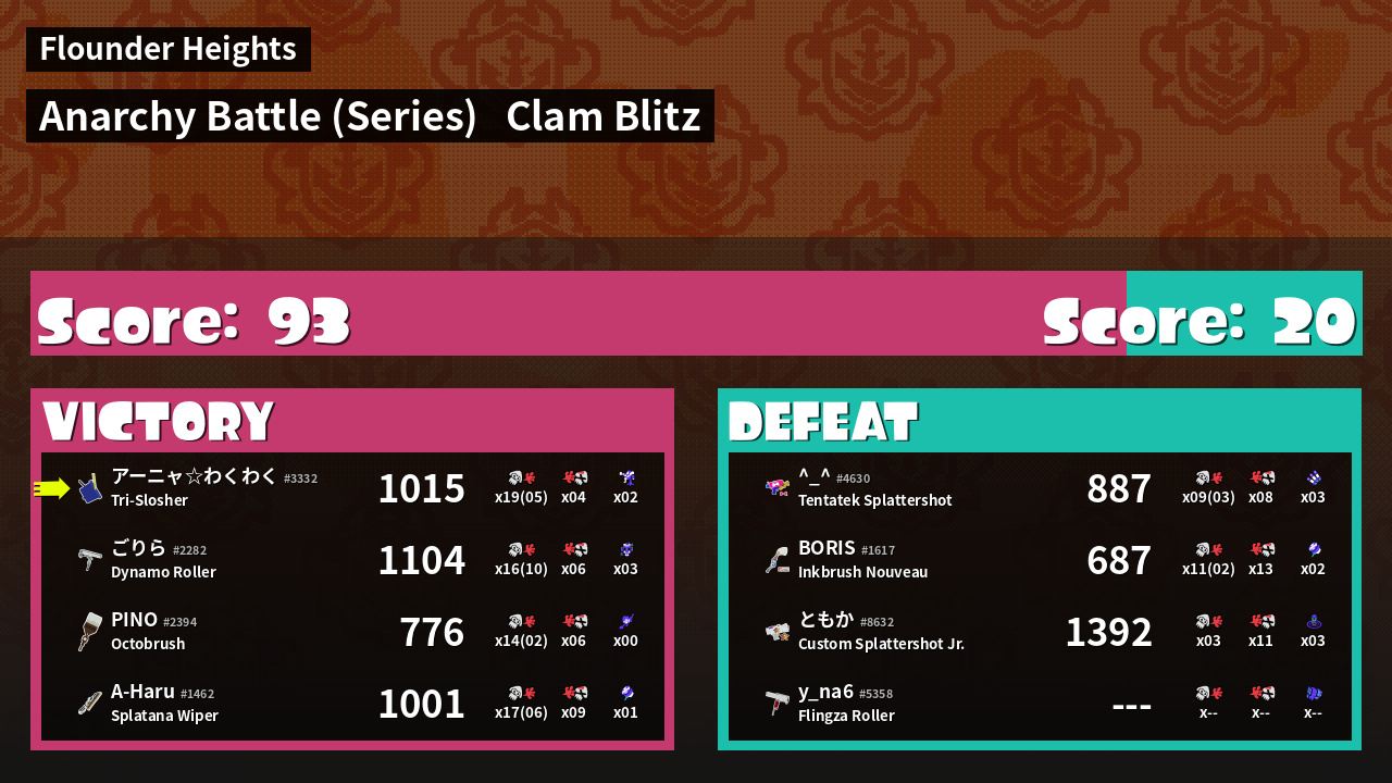 | Mode | Clam Blitz - Anarchy Battle (Series) | ||