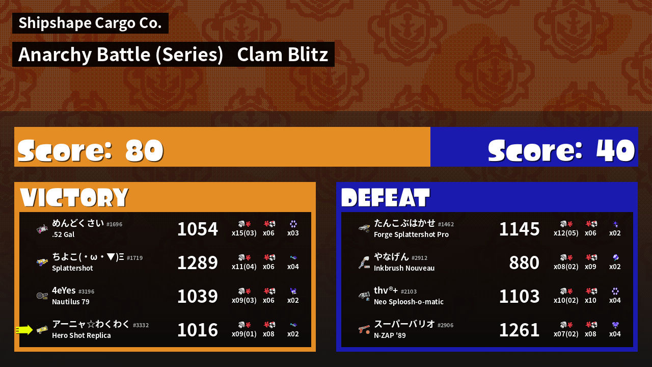| Mode | Clam Blitz - Anarchy Battle (Series) | ||