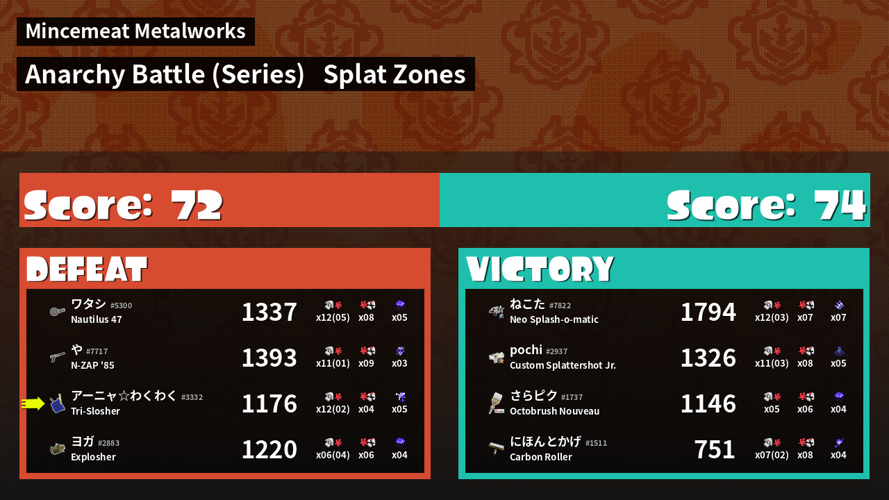 | Mode | Splat Zones - Anarchy Battle (Series) | ||