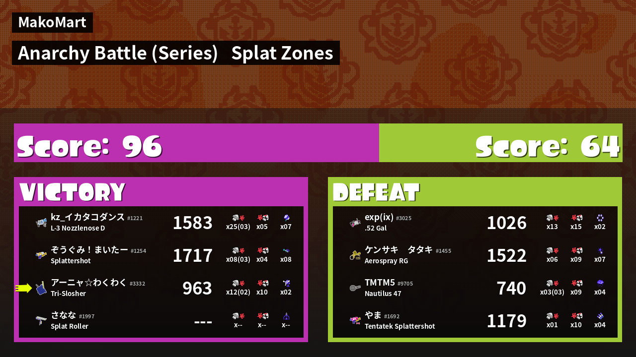 | Mode | Splat Zones - Anarchy Battle (Series) | ||