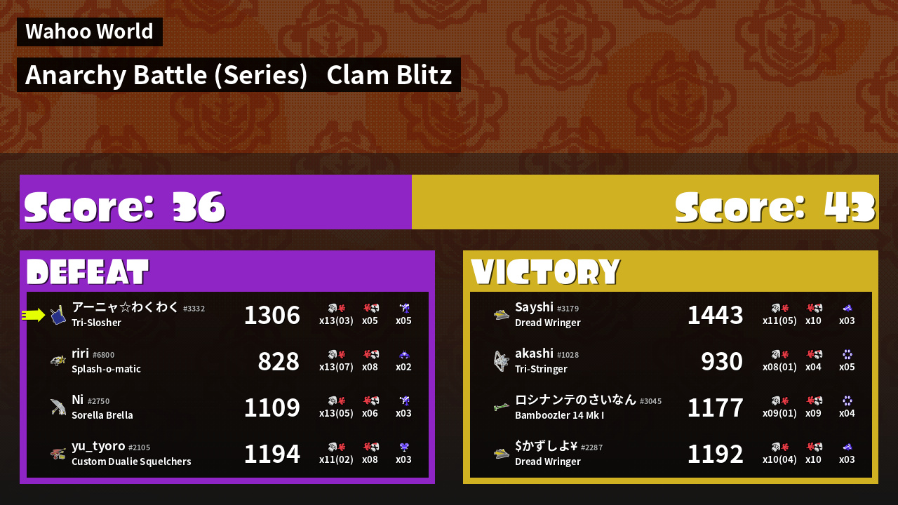 | Mode | Clam Blitz - Anarchy Battle (Series) | ||