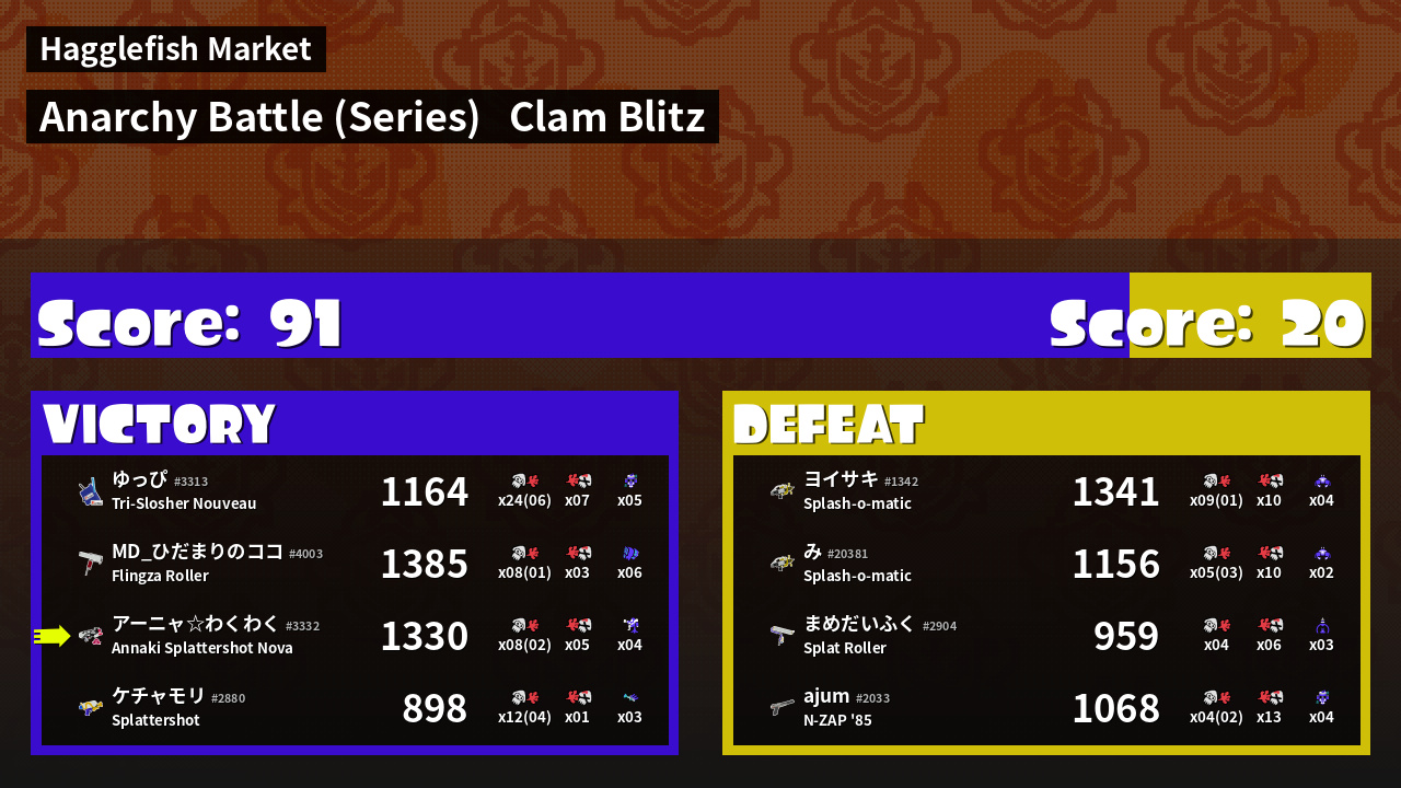 | Mode | Clam Blitz - Anarchy Battle (Series) | ||
