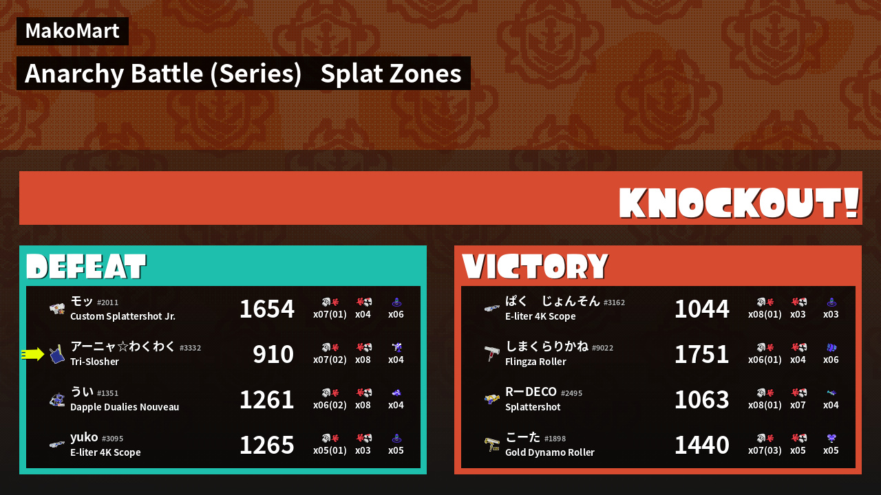| Mode | Splat Zones - Anarchy Battle (Series) | ||