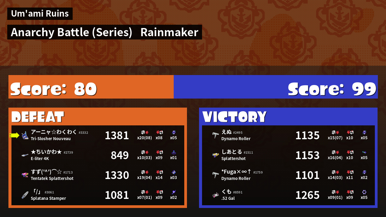 | Mode | Rainmaker - Anarchy Battle (Series) | ||