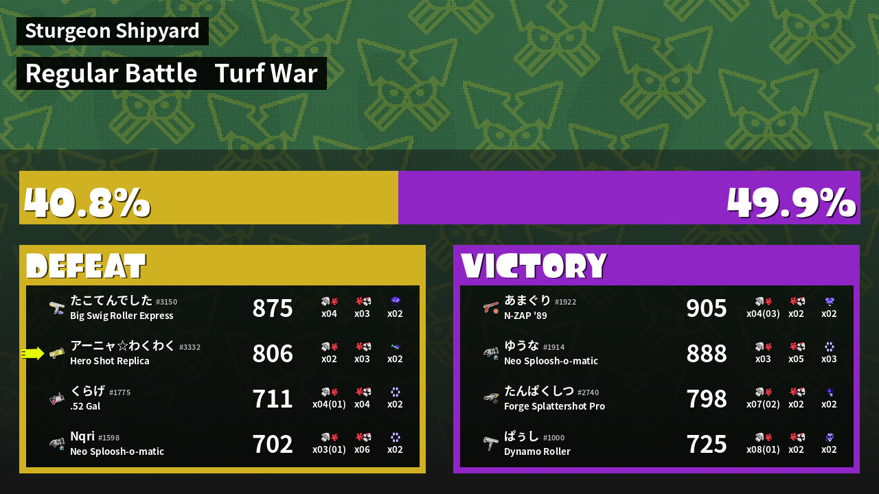 | Medals | #1 Damage Taker #1 Ink Consumer #2 Turf Inker | ||