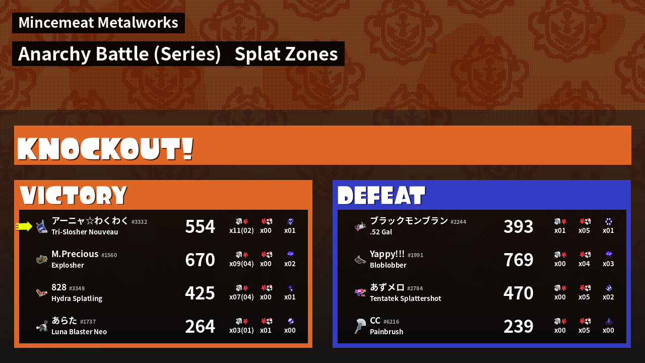 | Mode | Splat Zones - Anarchy Battle (Series) | ||