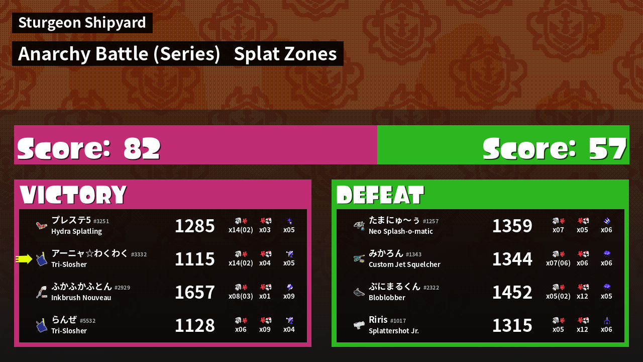 | Mode | Splat Zones - Anarchy Battle (Series) | ||
