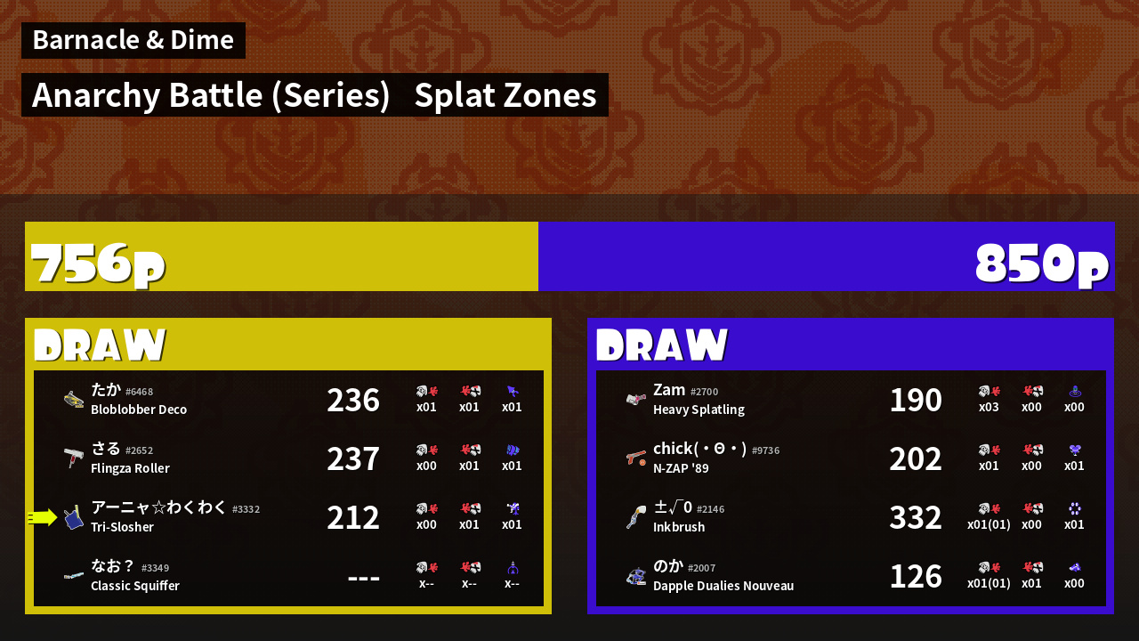 | Mode | Splat Zones - Anarchy Battle (Series) | ||