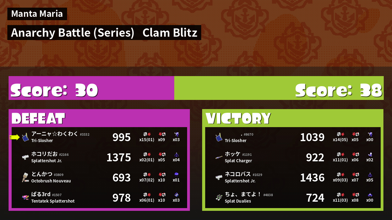 | Mode | Clam Blitz - Anarchy Battle (Series) | ||