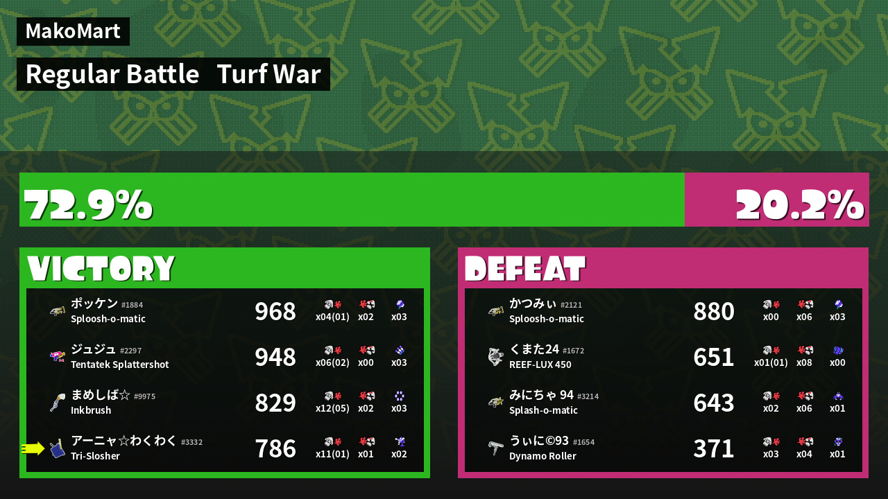 | Mode | Turf War - Regular Battle | ||