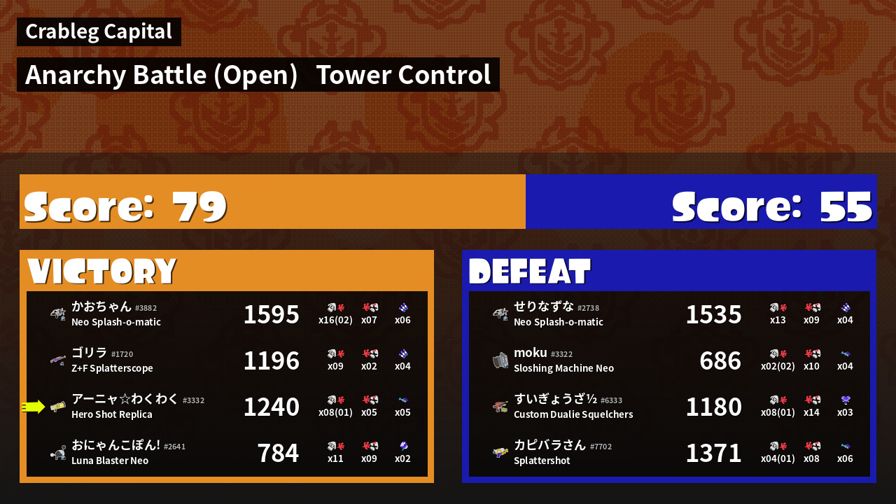 | Mode | Tower Control - Anarchy Battle (Open) | ||