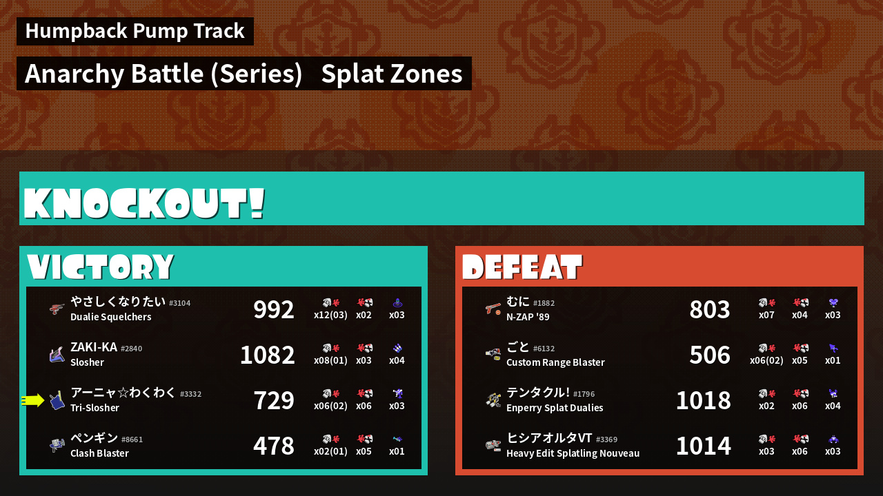 | Mode | Splat Zones - Anarchy Battle (Series) | ||