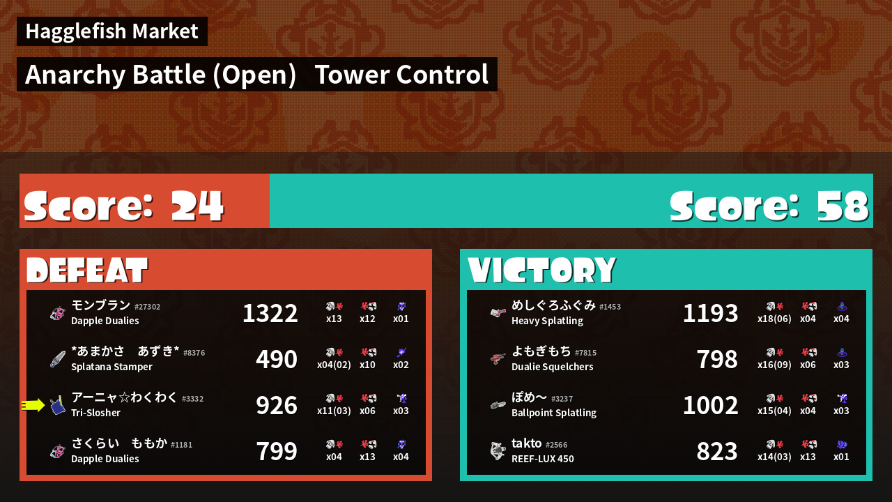 | Mode | Tower Control - Anarchy Battle (Open) | ||