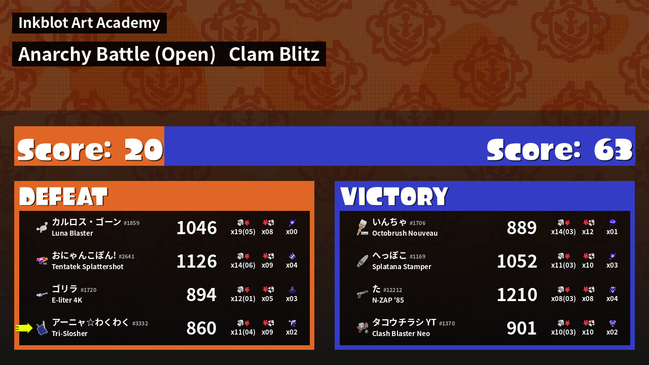 | Mode | Clam Blitz - Anarchy Battle (Open) | ||