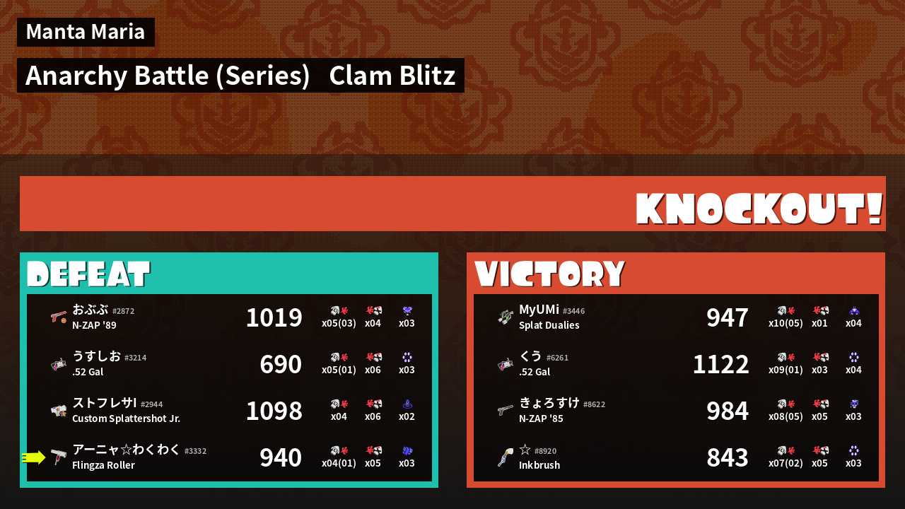 | Mode | Clam Blitz - Anarchy Battle (Series) | ||