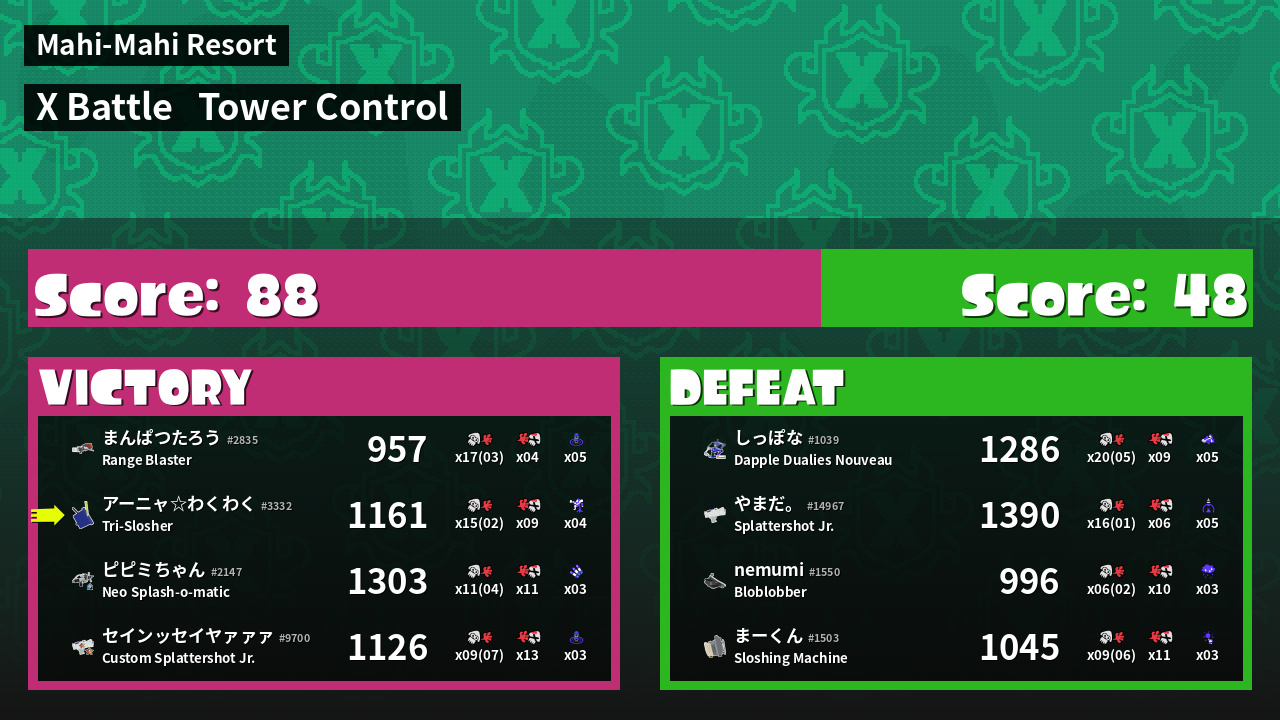 | Kills / Deaths | 13 + 2 / 9 > Kill Ratio: 1.44 | ||