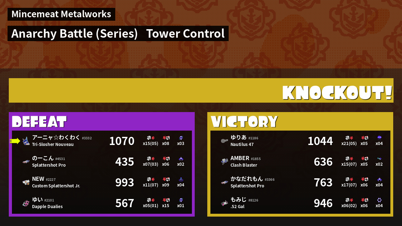 | Mode | Tower Control - Anarchy Battle (Series) | ||