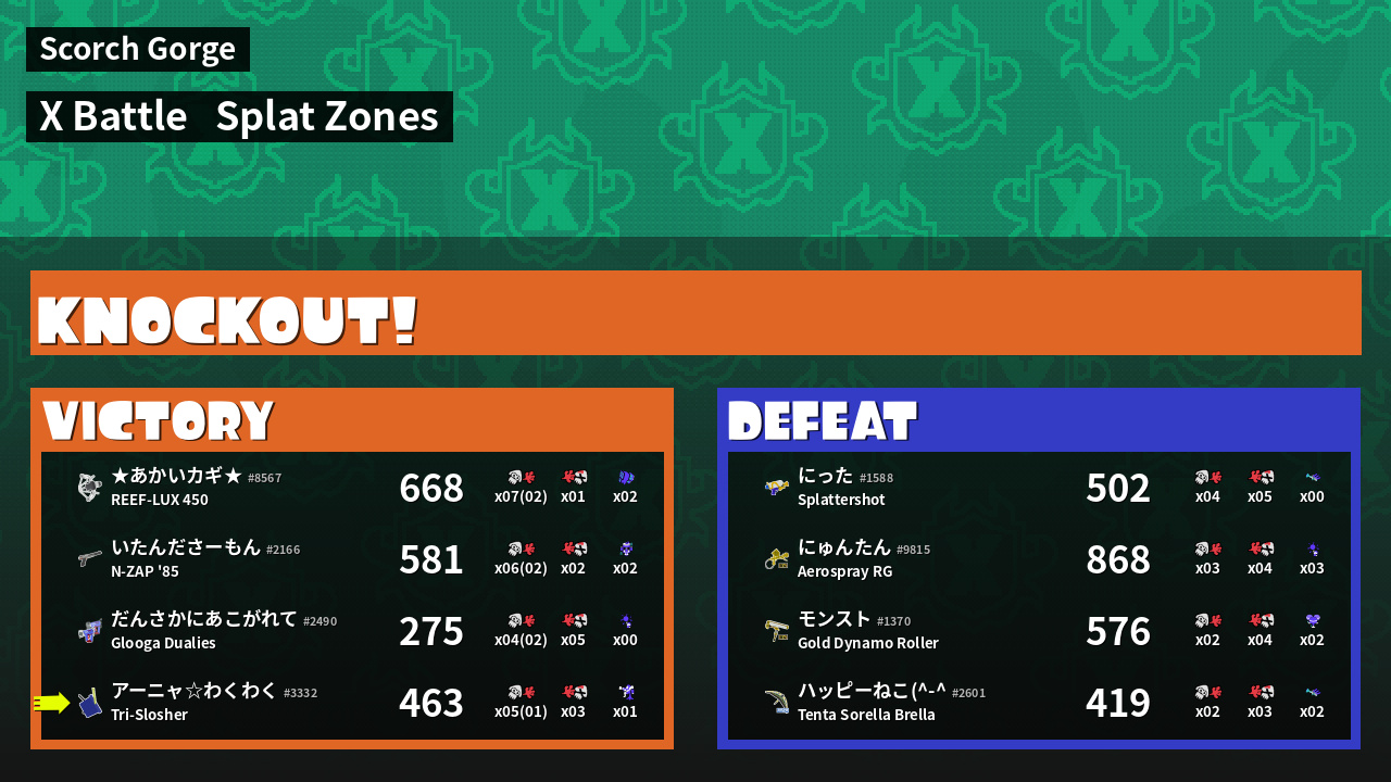 | Medals | #1 Inkjet User #2 Splat Zone Inker #2 Enemy Splatter | ||