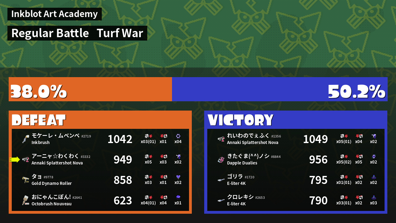 | Mode | Turf War - Regular Battle | ||