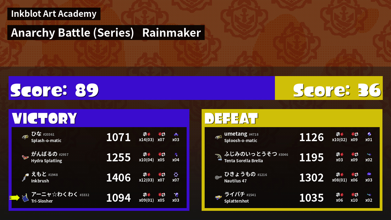 | Mode | Rainmaker - Anarchy Battle (Series) | ||