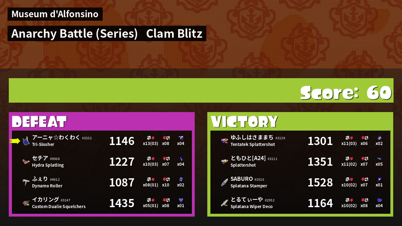 | Mode | Clam Blitz - Anarchy Battle (Series) | ||