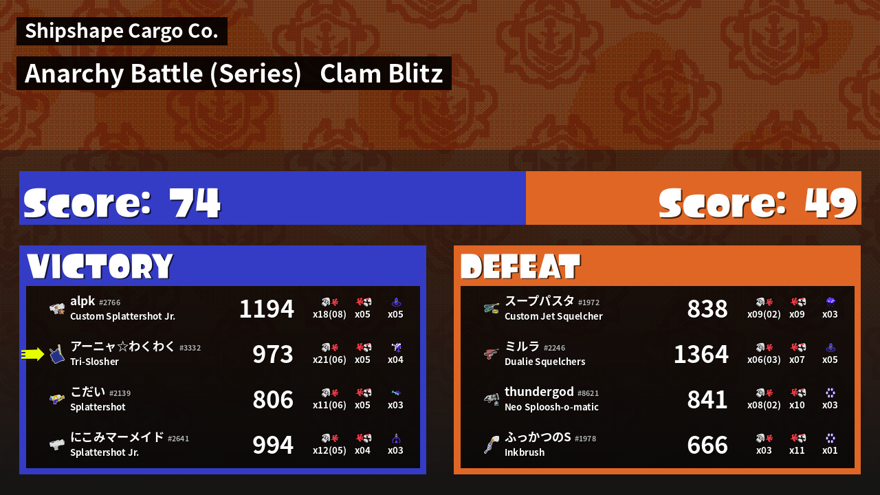 | Mode | Clam Blitz - Anarchy Battle (Series) | ||