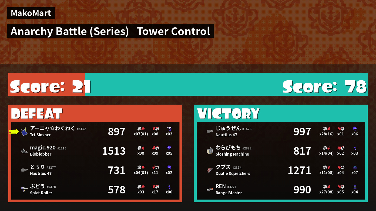 | Mode | Tower Control - Anarchy Battle (Series) | ||