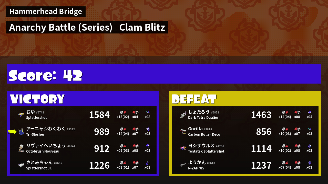 | Mode | Clam Blitz - Anarchy Battle (Series) | ||