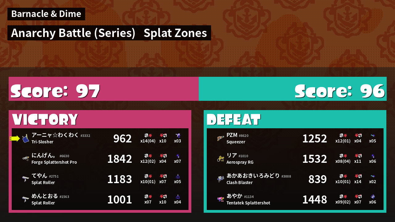 | Mode | Splat Zones - Anarchy Battle (Series) | ||