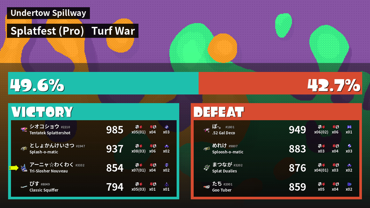 | Medals | #1 Enemy Splatter First Splat! #1 Tacticooler User | ||