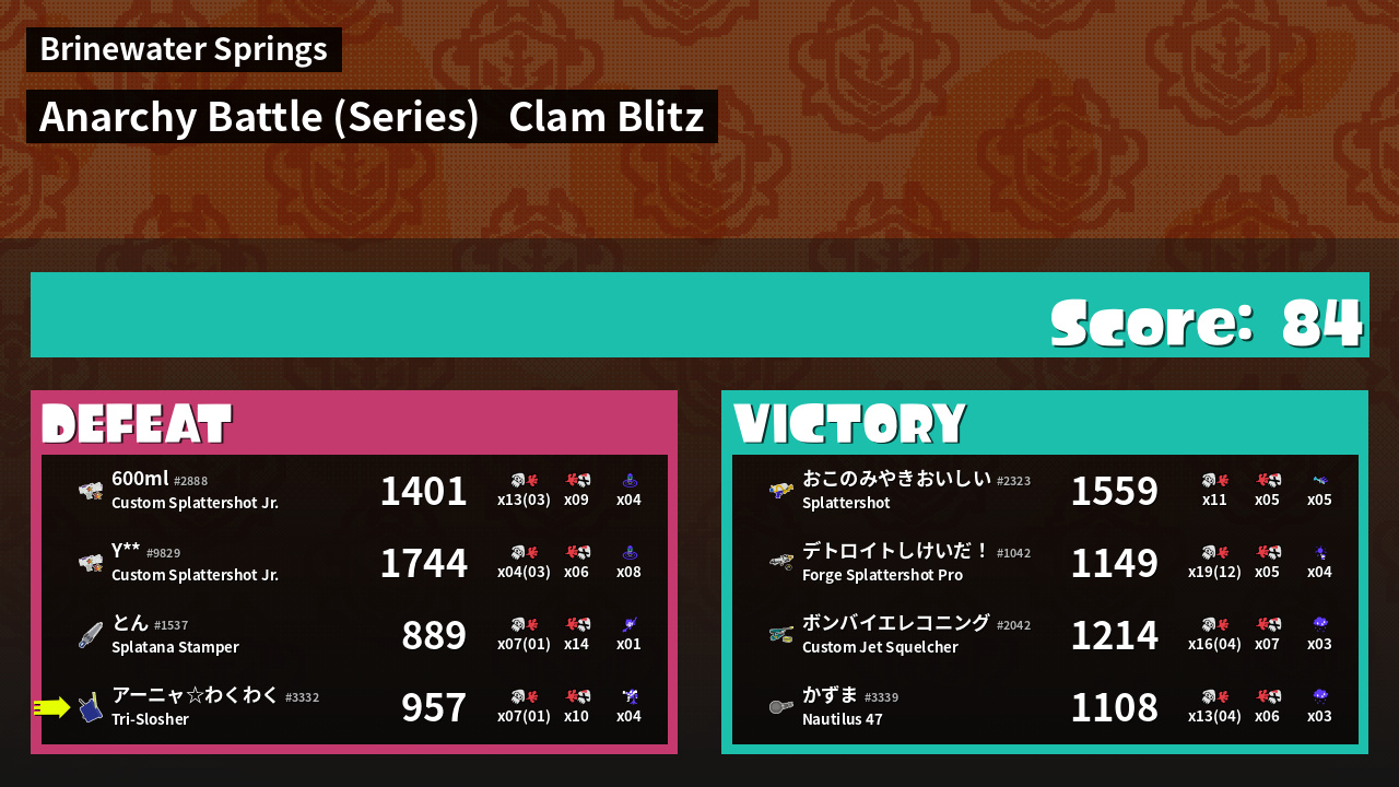 | Mode | Clam Blitz - Anarchy Battle (Series) | ||