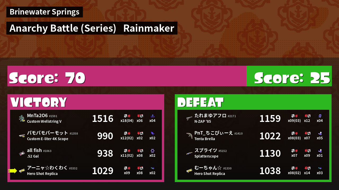 | Mode | Rainmaker - Anarchy Battle (Series) | ||