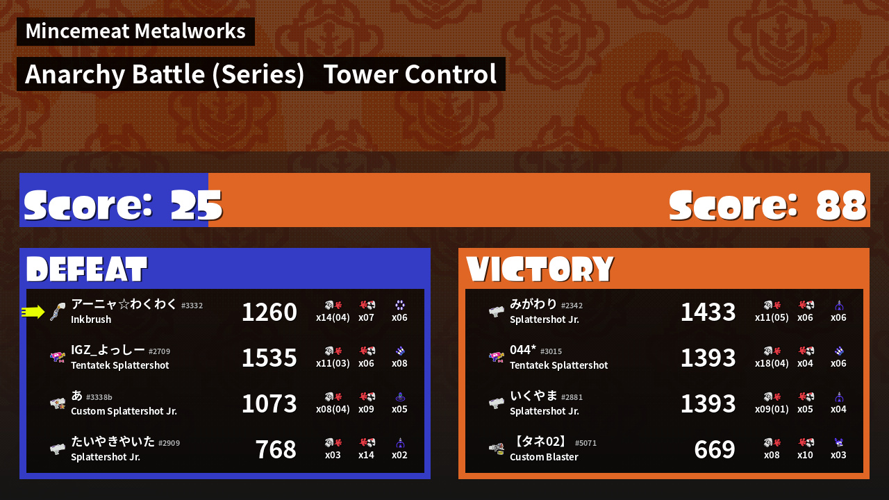 | Mode | Tower Control - Anarchy Battle (Series) | ||