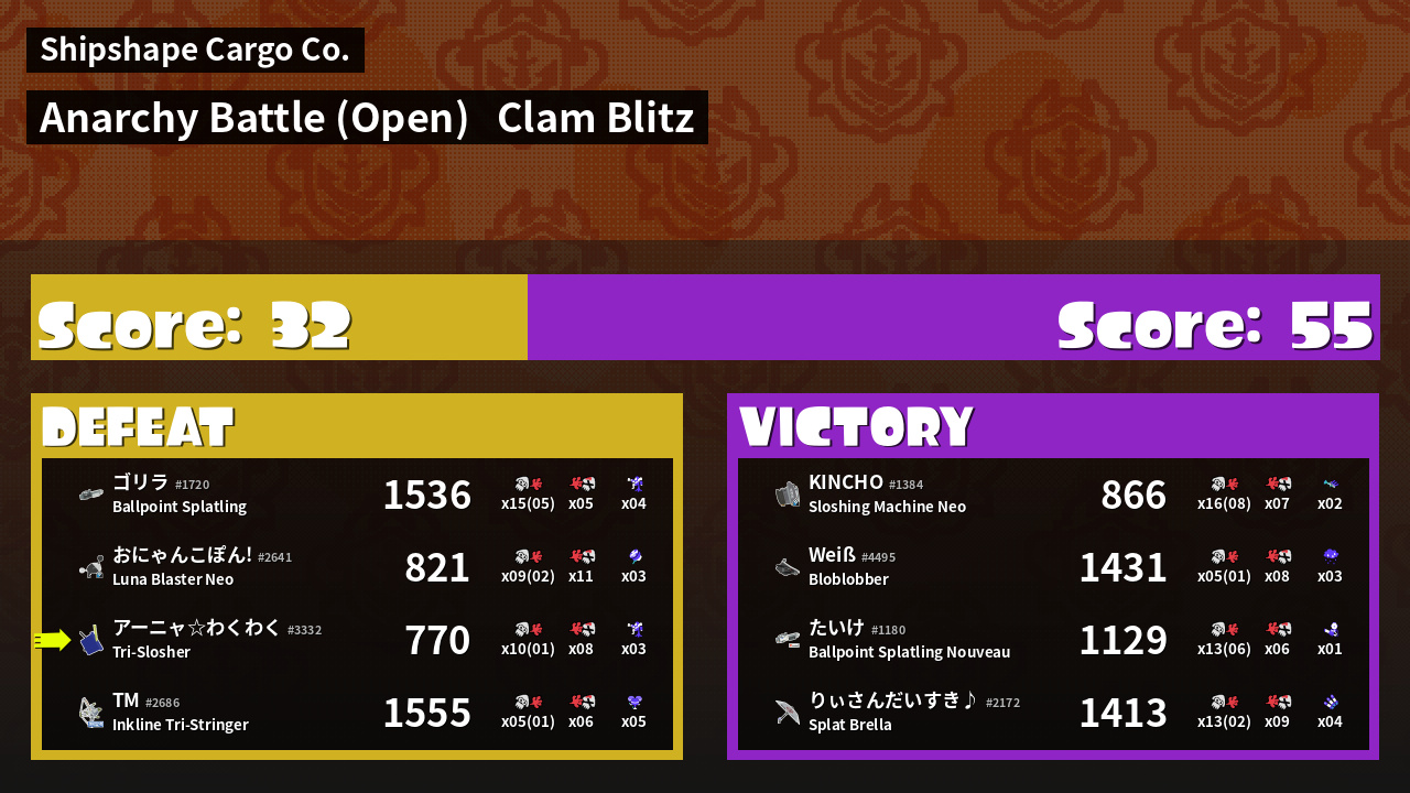 | Mode | Clam Blitz - Anarchy Battle (Open) | ||