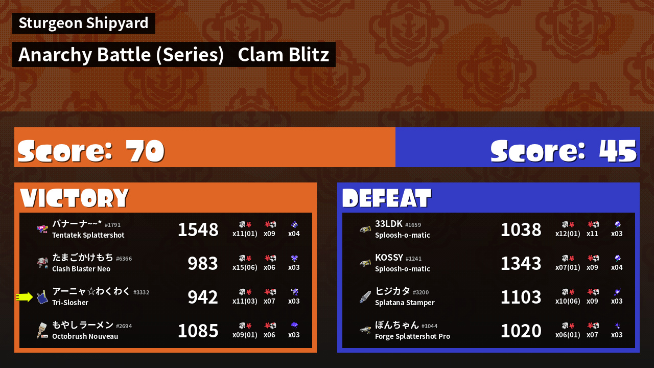 | Mode | Clam Blitz - Anarchy Battle (Series) | ||