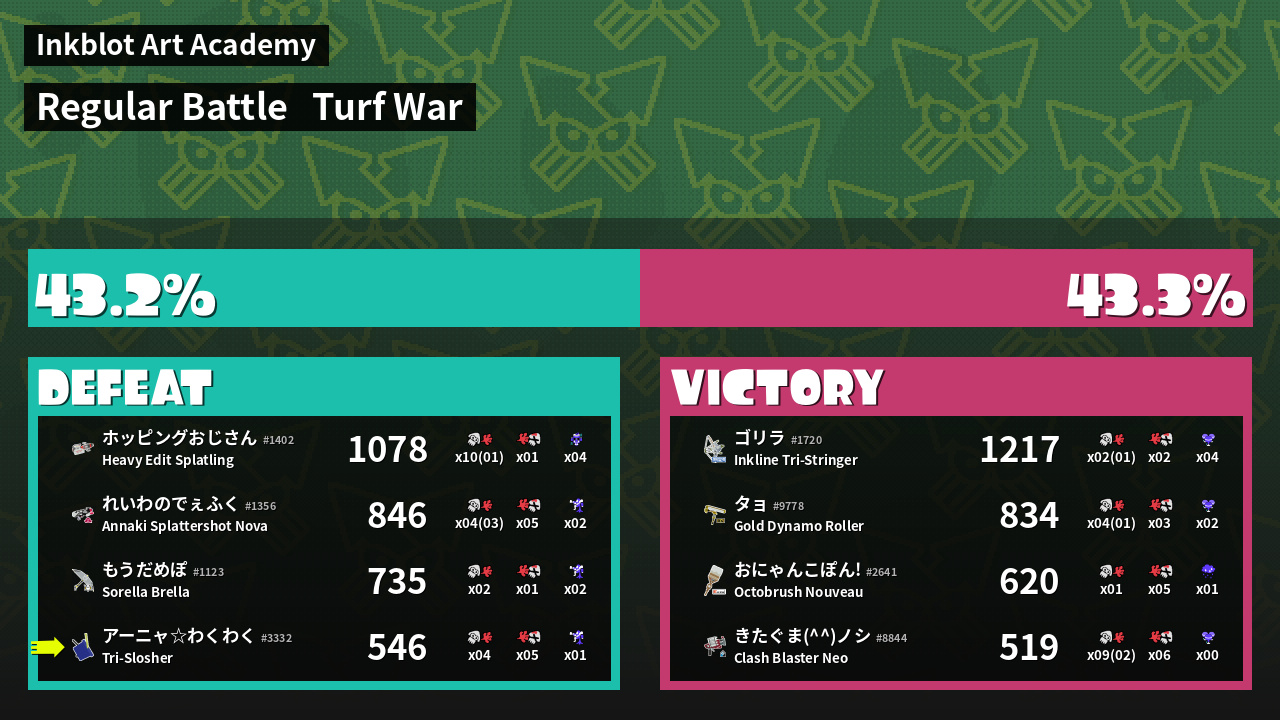 | Mode | Turf War - Regular Battle | ||