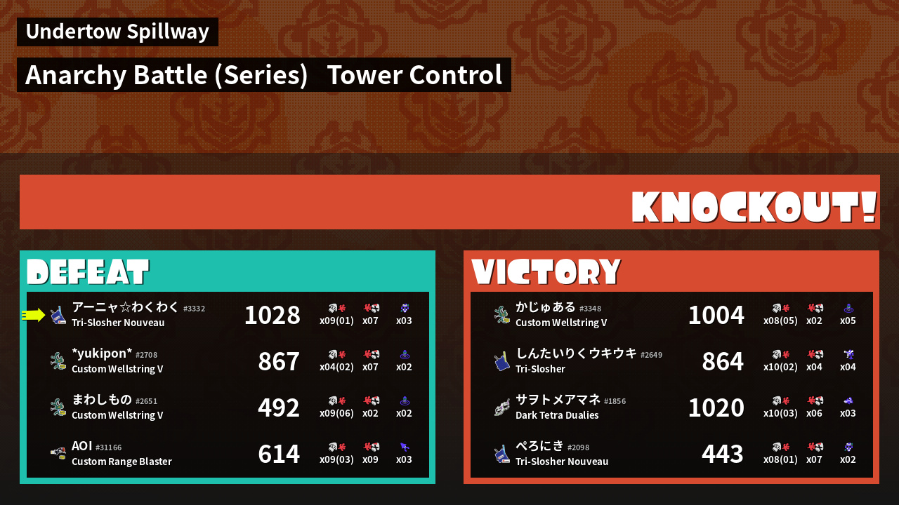 | Medals | #1 Overall Splatter #1 Turf Inker #1 Enemy Splatter | ||