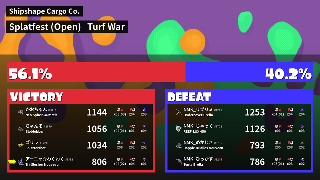 | Medals | #1 Home-Base Inker #1 Ink Consumer #2 Splat Assister | ||