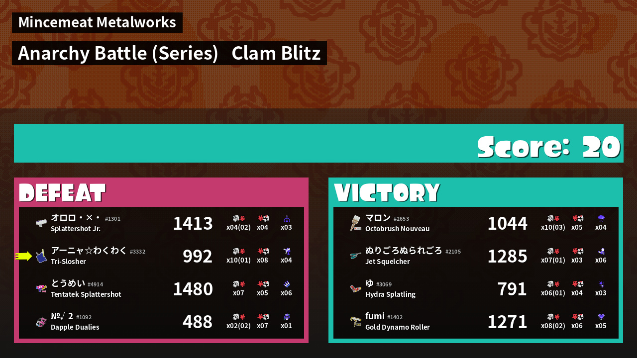 | Mode | Clam Blitz - Anarchy Battle (Series) | ||