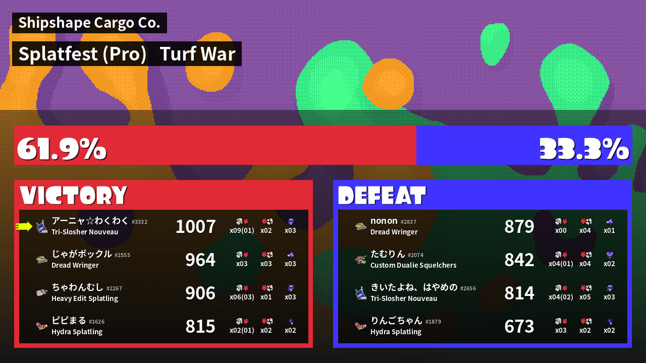 | Weapon | Tri-Slosher Nouveau ( Fizzy Bomb / Tacticooler) | ||