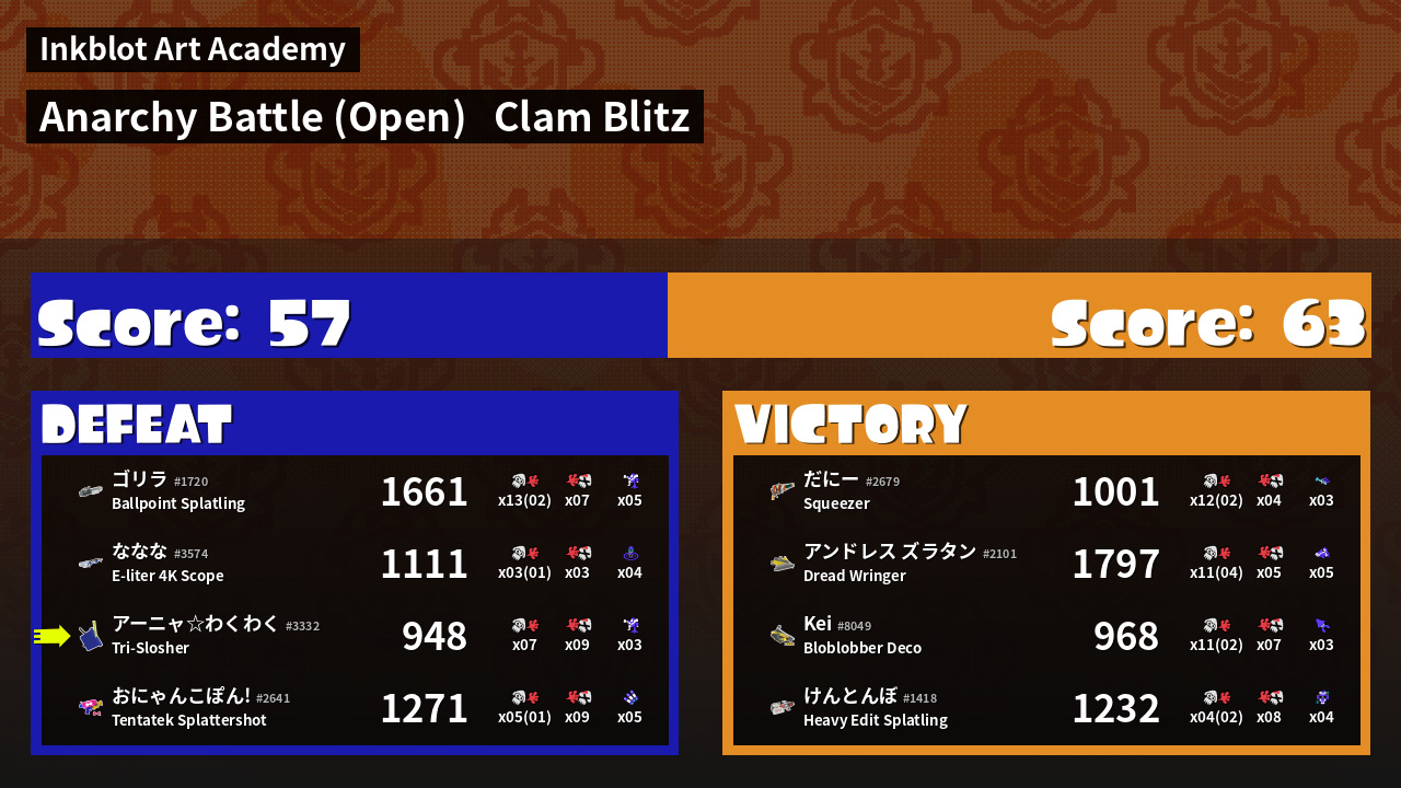 | Mode | Clam Blitz - Anarchy Battle (Open) | ||