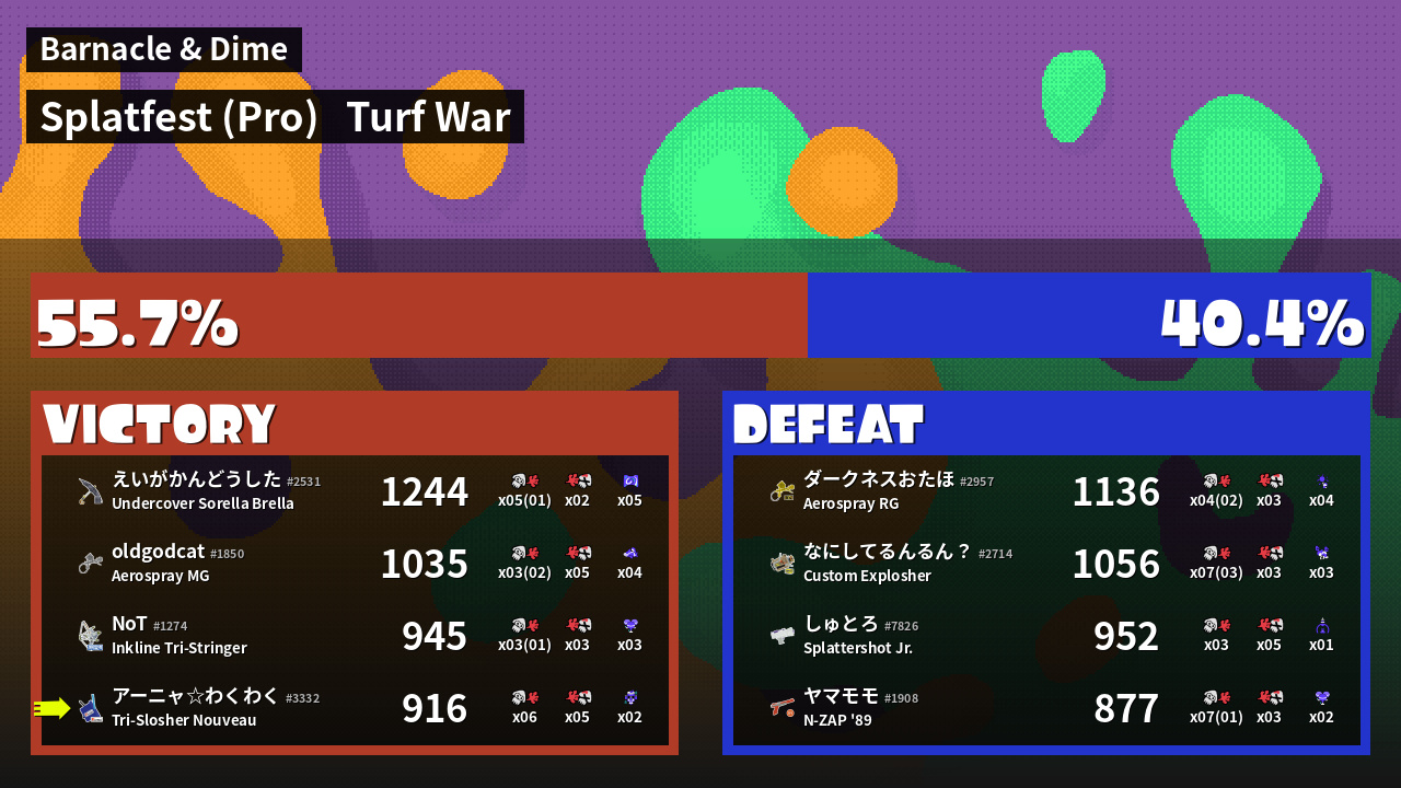 | Mode | Turf War - Splatfest (Pro) | ||