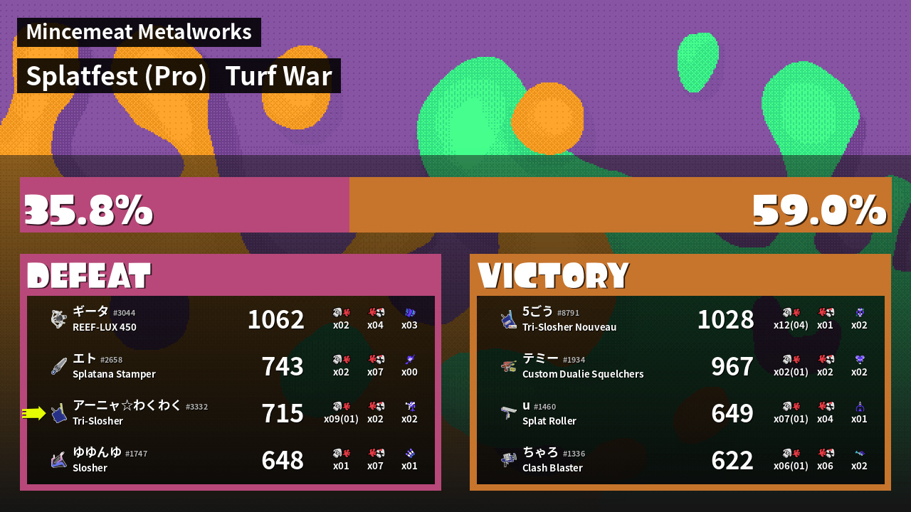| Mode | Turf War - Splatfest (Pro) | ||