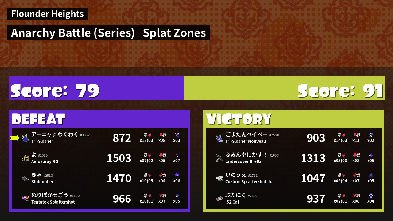 | Mode | Splat Zones - Anarchy Battle (Series) | ||
