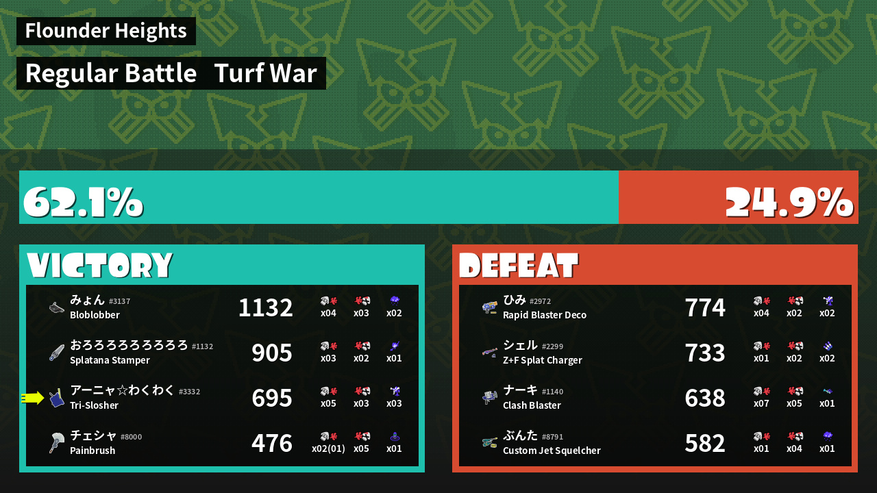 | Mode | Turf War - Regular Battle | ||