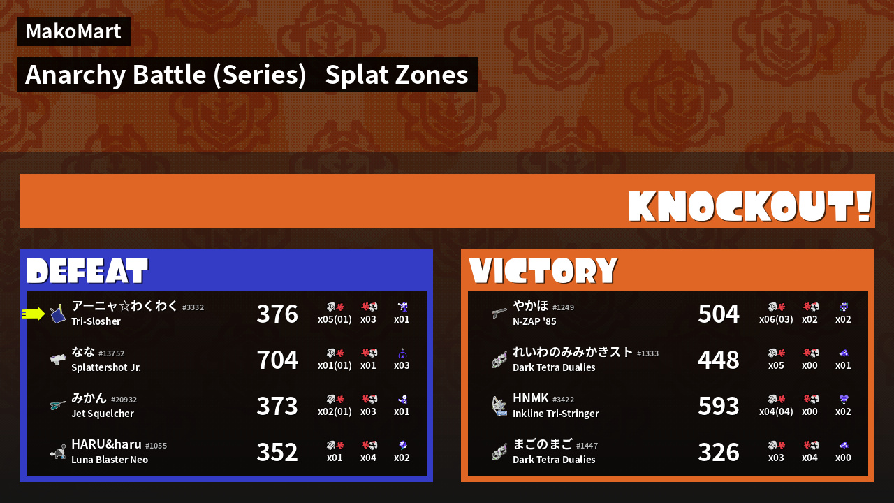 | Mode | Splat Zones - Anarchy Battle (Series) | ||
