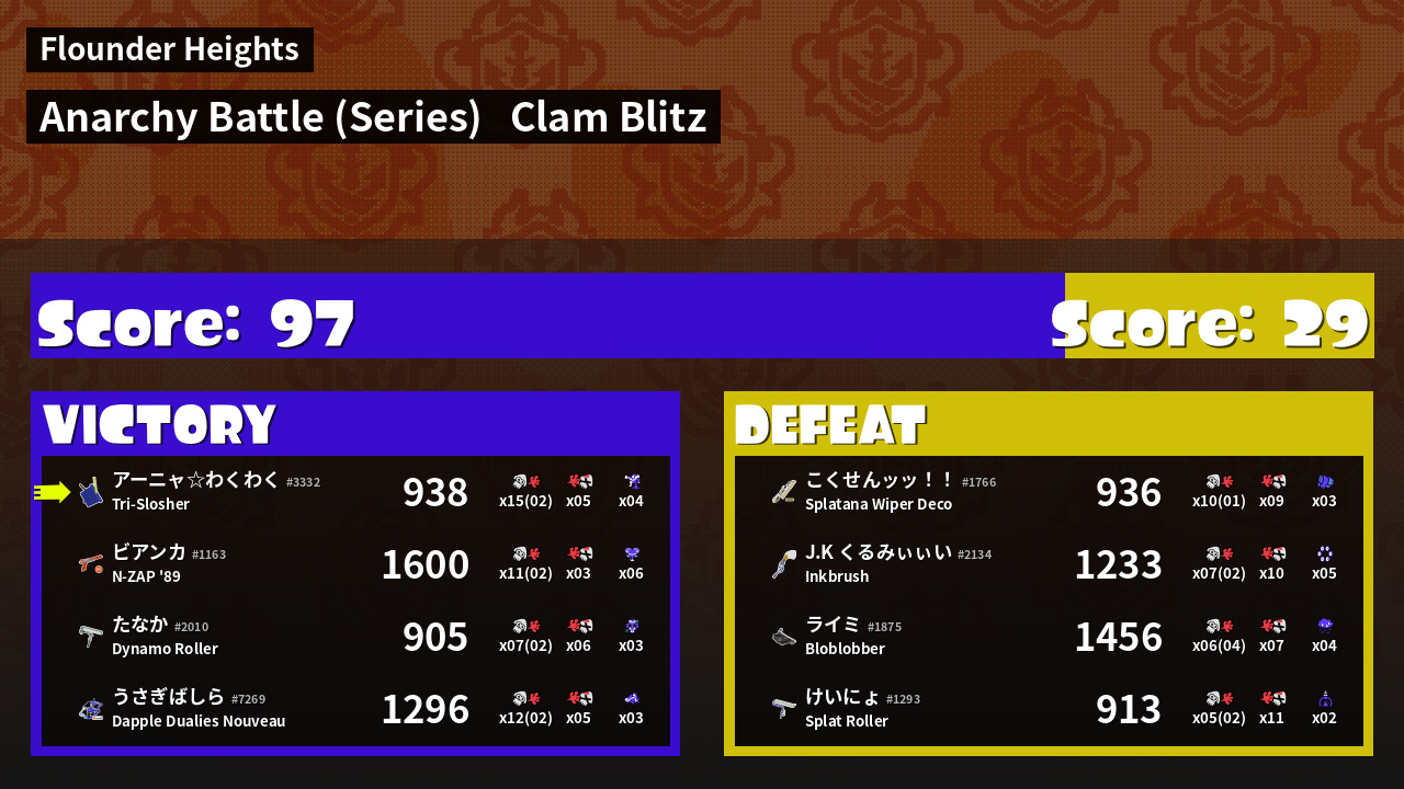 | Mode | Clam Blitz - Anarchy Battle (Series) | ||