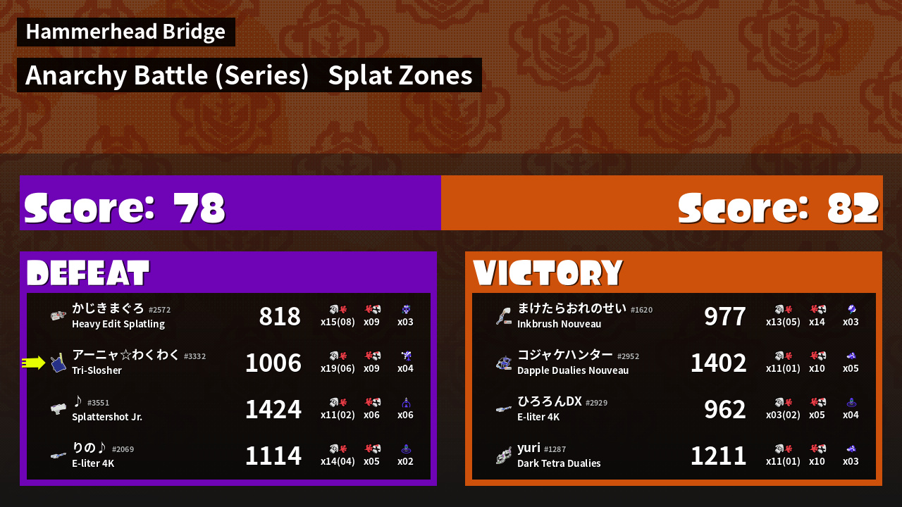 | Mode | Splat Zones - Anarchy Battle (Series) | ||