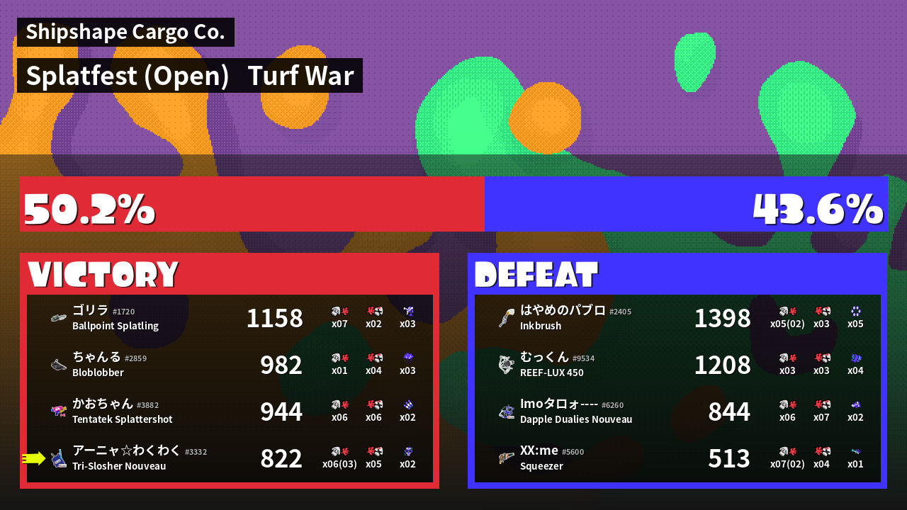 | Medals | #1 Enemy-Base Inker #1 Splat Assister #1 Ink Consumer | ||