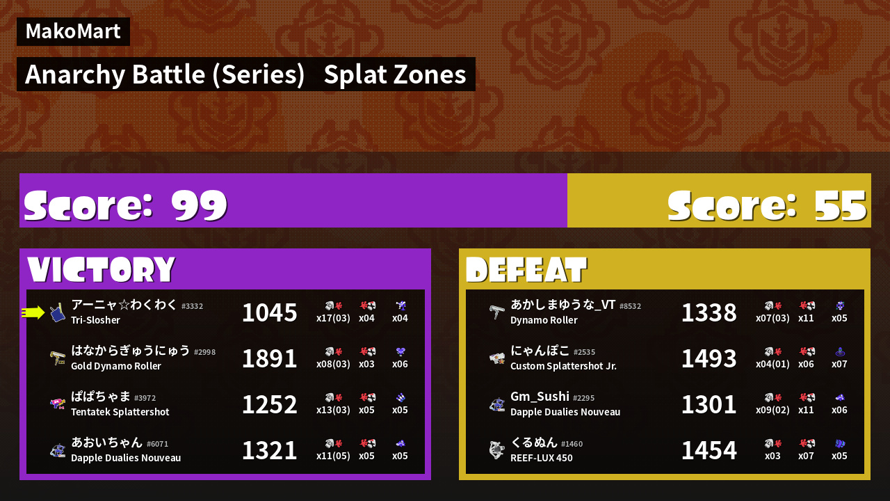| Mode | Splat Zones - Anarchy Battle (Series) | ||